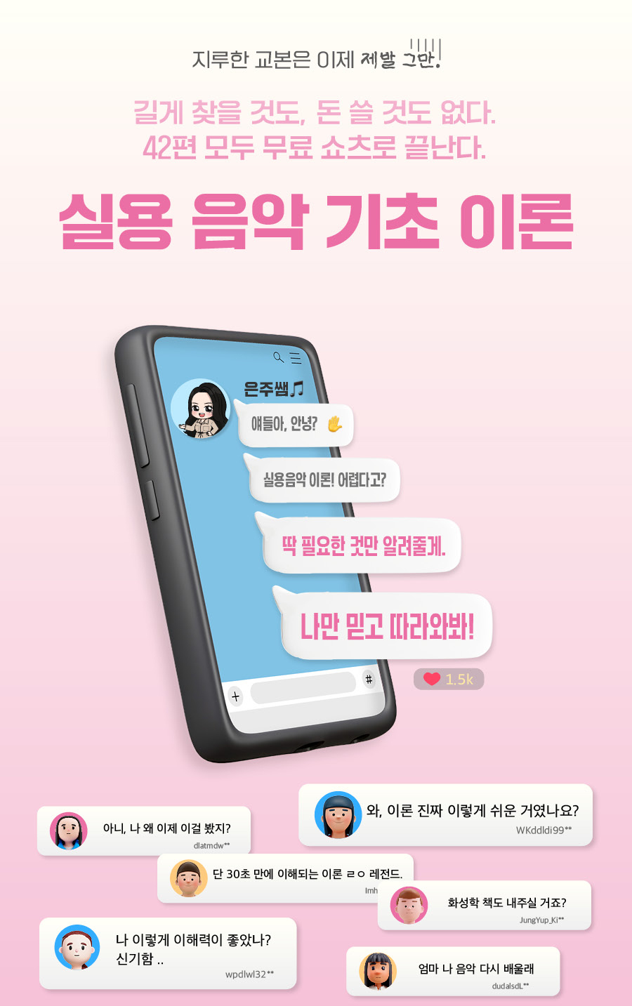 이 책의 가장 큰 강점은 ‘빠른 학습’에 있다. 3분도 안 되는 숏폼 강의의 방식 그대로, 딱딱하고 어렵게 느껴지던 음악 이론을 짧은 호흡ㆍ직관적인 예시ㆍ핵심만 남긴 커리큘럼으로 정리해 누구나 막힘없이 이해할 수 있도록 구성했다.