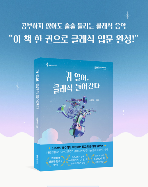 궁예 레퀴엠, 강호동 협주곡 등 파격적인 기획으로 클래식계에 '조회수 혁명'을 일으킨 KBS교향악단 서영재 PD의 첫 단행본 〈귀 열어, 클래식 들어간다〉가 출간되었다. 이 책은 '클래식은 지루하고 어렵다'는 해묵은 편견을 정면으로 돌파한다.