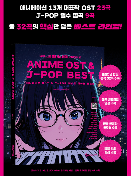 애니메이션의 감동을 손끝으로 다시 느끼고 싶은 순간, 좋아하는 곡을 직접 연주해보고 싶은 모든 이들에게 이 책은 가장 가까운 시작점이 되어준다. 인기 애니메이션 OST와 J-POP 32곡을 통해, 듣는 음악을 넘어 ‘연주하는 즐거움’까지 경험할 수 있는 특별한 플레이리스트가 펼쳐진다.